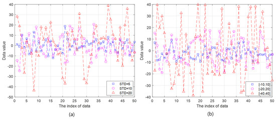- In addition, the uniform distribution is also applied in simulations in order to investigate the feasibility of the API according to the type of data distributions. The uniform distribution is a typical probability density function(pdf) which is different from the normal distribution, is also simple and easily analyzed after obtaining the simulation results. Another data following a uniform distribution are in the range of [−10,10] (i.e., ), [−20,20] (i.e., ), and [−40,40] (i.e., ), as illustrated in Figure 3b.