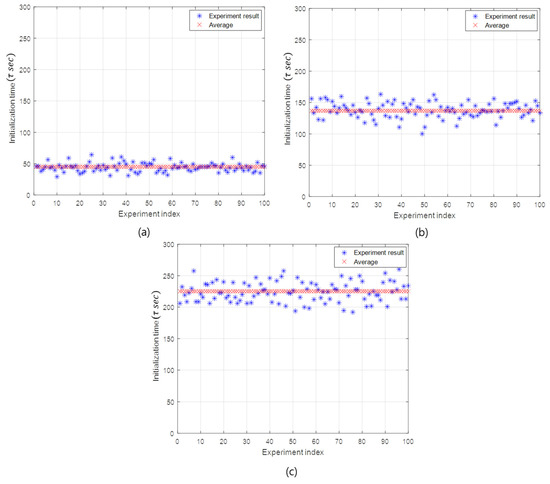 - For one case with a fixed BER and initialization rate, 10,000 simulation tests are performed, and the average values of the performance metrics are derived. After performing the simulation tests in the same way by changing the BER and the initialization rate, the performance of the API, and the FI are analyzed and compared with each other.