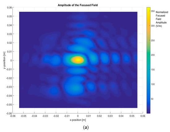 Focused field amplitude of the metallic car without an antenna. Frequency range: 295 GHz–305 GHz (bandwidth (BW) = 10 GHz).