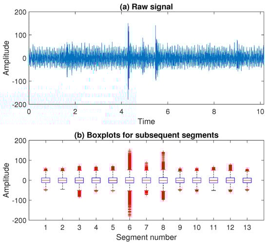 The raw signal and the boxplots presenting the values in the subsequent segments.