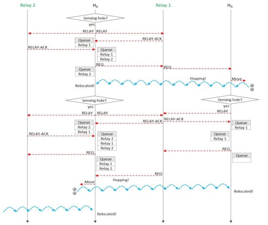 An example of hopping sensors relocation [].