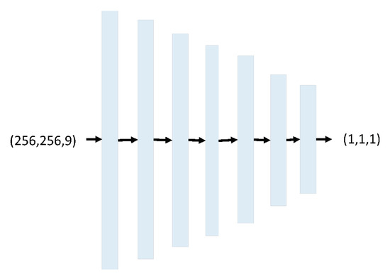 The input of Discriminator is source image which is the input of Generator, and noise distribution target which is calculated from Equation (3). The output of Discriminator is patch image with size 1 × 1. The concept of patch is designed based on the size of the receptive field, sometimes called the effective receptive field. The receptive field is the relationship between one output activation of the model to an area on the input image. The 1 × 1 output patch means that the Discriminator will classify 1 × 1 patches of the input image as real or fake. We run this Discriminator convolutionally across the image, averaging all responses to provide the ultimate output of the Discriminator D. We chose 1 × 1 because smaller PatchGAN has fewer parameters, runs faster, and can be applied to arbitrarily large images [34].