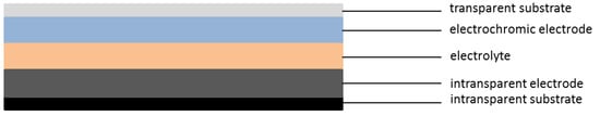 Schematic built-up of an electrochromic device with an electrochromic electrode.