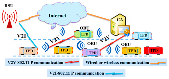 Many V2X security protocols are based on public key infrastructure (PKI) employing elliptic curve cryptography (ECC) to support message authentication and integrity [2]. In PKI, the elliptic curve digital signature algorithm (ECDSA) generates a signature for the message to send and attaches the sender’s certificate along with the generated signature to the original message. While the security protocols based on ECDSA provide a high-security level, they incur high communication cost due to the large size of the attached certificate and digital signature [3]. The signing and verifying processes of the ECC method are also highly time-consuming, especially when implemented in software. One of the critical issues concerning the previous V2X authentication protocols is their heavy dependence on a centralized certificate authority (CA), which can cause severe traffic congestion and a single point of failure at the CA.