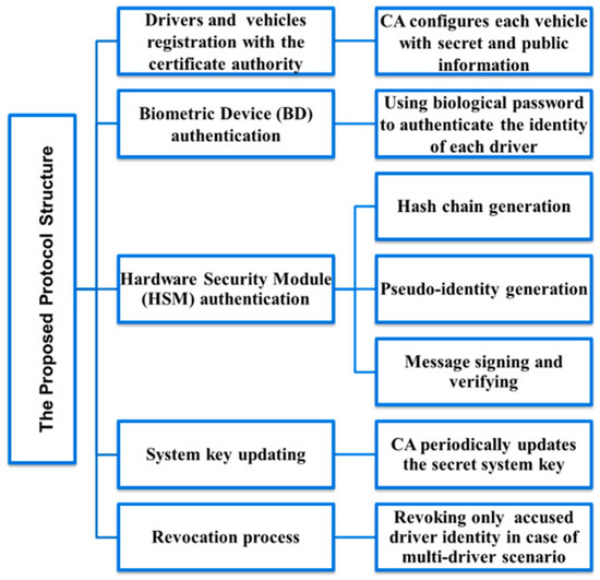 In [13], the authors proposed an efficient authentication and privacy protocol based on the key-separation algorithm. Their protocol provides two types of secret keys and updates them periodically. The first secret key is issued by the CA of the network system, while the second secret key is issued by each vehicle. This protocol supports TPD installation in each vehicle; however, it is vulnerable to single system key failure and modification attacks.