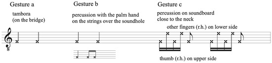 - Freire, S.; Armondes, A.; Viana, J.; Silva, R. Strumming on an acoustic nylon guitar: Microtiming, beat control and rhythmic expression in three different accompaniment patterns. In Proceedings of the 15th Sound and Music Computing Conference, Limassol, Cyprus, 4–7 July 2018. [Google Scholar]
