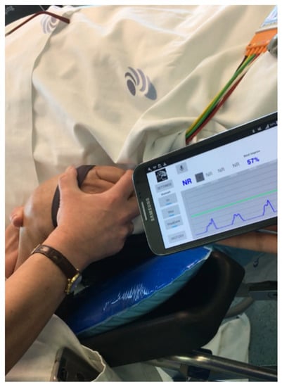 In addition to the limitations on the classification model, the first version also had limitations on the hardware level. The iHandU 1.0 required connection to a computer for signal processing and data visualization. Consequently, to provide the wrist rigidity improvement to clinicians at each stimulation, i.e., in real-time, it was necessary to integrate the computer into the operating room environment. This was a disadvantage due to the space that a computer occupies. Therefore, we suggested that a smaller external device (but with equivalent processing power) should be integrated to fulfill that role, improving usability in intra-operatory conditions. Also, we agreed that the wearable device could be improved in term of patient’s comfort and clinicians’ usability, since this version was large, thicker and difficult to fix to the patient’s hand.