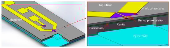 - Twice ion implantation on the device layer is performed to form the gauge piezoresistors and ohmic contact area respectively.