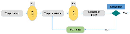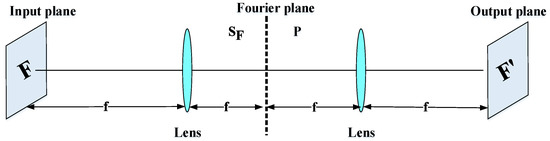 Figure 4. All “” optical configuration [37].For example, the VLC technique is done by two cascade Fourier transform structures realized by two lenses [4], as presented in Figure 5. The VLC technique is presented as follows: firstly, a 2D-FFT is applied to the target image to get a target spectrum . After that, a multiplication between the target spectrum and the filter obtain with the 2D-FFT of a reference image is affected, and this result is placed in the Fourier plane. Next, it provides the correlation result recorded on the correlation plane, where this multiplication is affected by inverse FF.