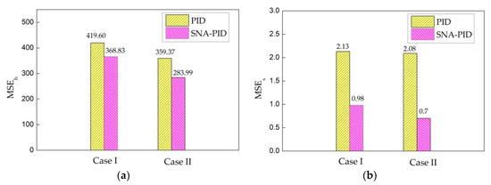 Figure 14 shows that the track errors generated by the SNA-PID controller are much less than that generated by conventional PID. Especially, the SNA-PID controller demonstrates a great advantage in static tracking performance. In comparison to the PID controller, the proposed controller yields 54% and 66% reductions on static tracking error under two typical cases. All the comparative results further evidence the superiority of the SNA-PID controller. Meanwhile, Figure 14 also illustrates that the relaxed limitations in Case II bring a reduction in MSE. Therefore, the relaxation of limitation is clearly beneficial to performance enhancement.