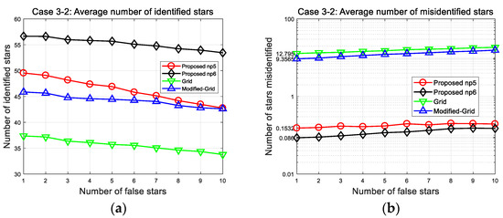 Case 3-2: (a) Number of correctly identified stars; (b) number of misidentified stars.