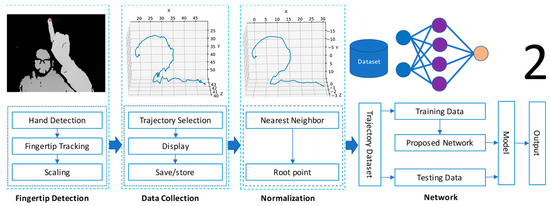 The whole process is divided into four principal parts: fingertip detection, data collection, normalization, and network design. A complete block diagram is shown in Figure 1 to describe the details of the proposed method. The following subsections provide an in-depth explanation for each part.