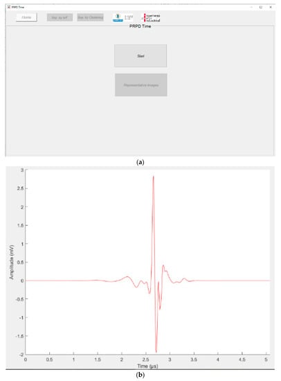 (a) Phase-resolved partial discharge (PRPD)-time tool, login window and (b) visualization of one of the pulses analysed.