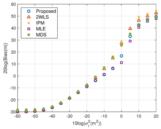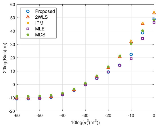 - Ho, K.C. Bias Reduction for an Explicit Solution of Source Localization Using TDOA. IEEE Trans. Signal Process. 2012, 60, 2101–2114. [Google Scholar] [CrossRef]
