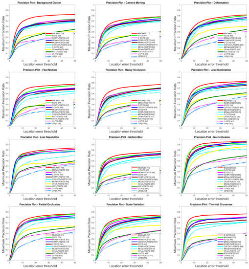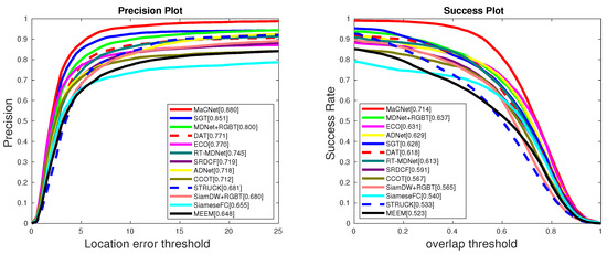 Figure 6. From these PR/SR results, we observe that our MaCNet can well handle various challenging factors and outperform the other trackers in ten out of twelve attributes.