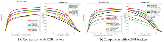 (3) Attribute-based performance. We also report the attribute-based results of our MaCNet versus other state-of-the-art eight RGB trackers and ten RGB-T trackers on the RGBT234 dataset [
