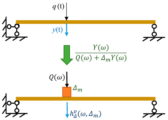 By combining Equations (6)–(8), the frequency response of the modified structure with modified or additional physical parameters can be expressed as in Equation (9):