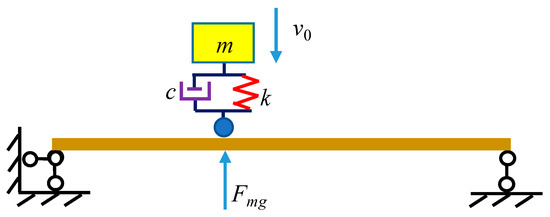 Damage identification using additional virtual mass [42] requires that the excitation be known. A modal force hammer is often used to constitute the additional virtual mass, but it has a limited impact energy. In recent years, a vehicle bump has become popular as an excitation due to its convenient application in practice with an impact energy sufficiently large for a bridge structure. However, a bump-induced excitation is complex because the vibrations of the vehicle and the bridge are coupled. Therefore, a precise analysis of the entire process of the bump-induced excitation is necessary to provide an accurate excitation time history, as is required for the construction of the additional virtual mass.