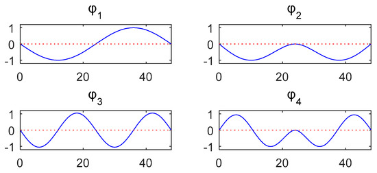 where the diagonal matrix . Let be the observation matrix that is an invertible matrix related to the sensors adopted in the test. The responses of the modified structure can be expressed as follows: