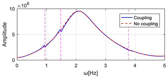 For a virtual structure with an added virtual mass , its frequency response in Figure 1 can be calculated using Equation (11), which is a simplified form of Equation (10), as deduced in detail in [42]: