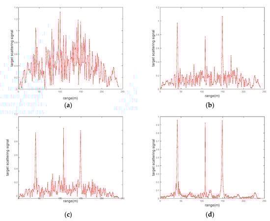 Figure 6a, the target discrimination capability becomes significantly enhanced by the increasing iteration number. Specifically, the noise is suppressed by about 2.5 dB.
