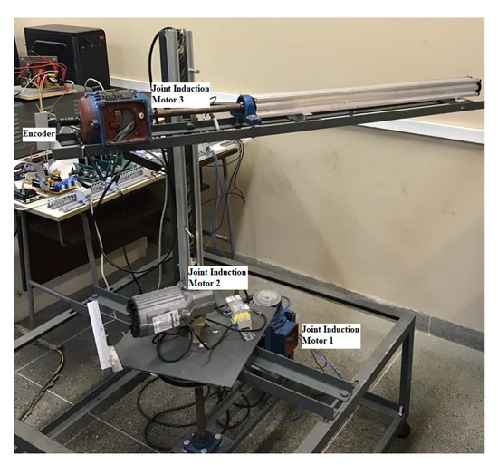 This section presents the characteristics of the manipulator used in this research, as well as the kinematic and dynamic modelling. The kinematics will be modelled using Denavit–Hartenberg (DH) notation, and the dynamic model is based using the Lagrangean Mechanics (LM) modelling method formulations. A cylindrical robotic manipulator that is driven by three phase induction motors was used in this work. As can be seen in Figure 1 the first joint moves around the main axis of the structure (rotational motion), the second and third joints have linear (prismatic) movements, which defines as a RPP (Rotational-Prismatic-Prismatic).