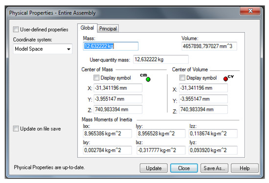 Physical properties of the manipulator joint 2—Software Solid Edge©.