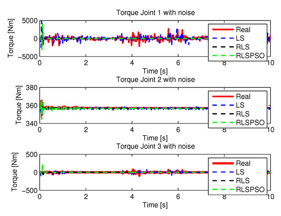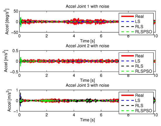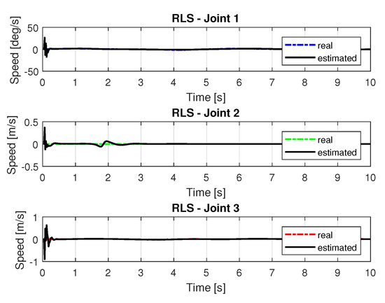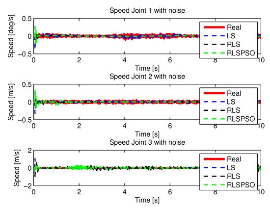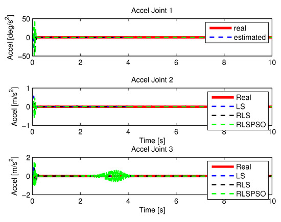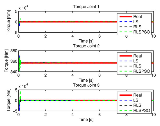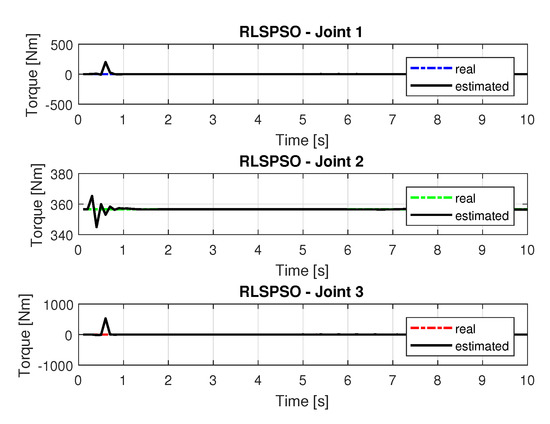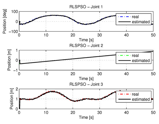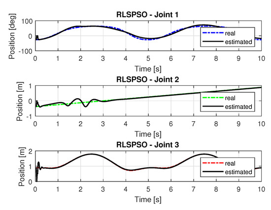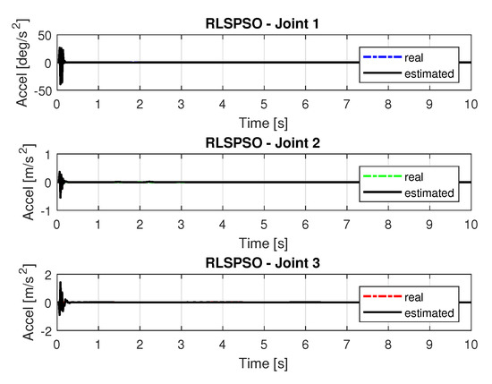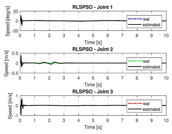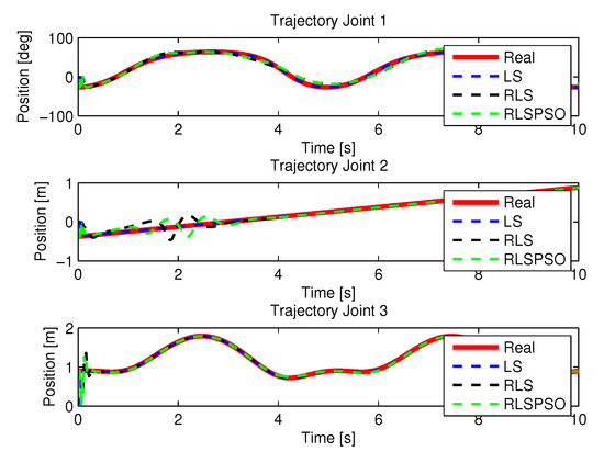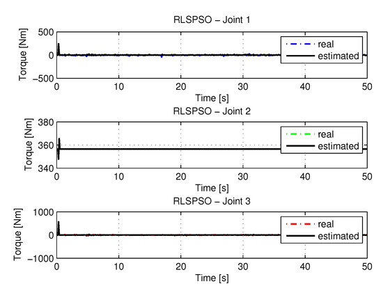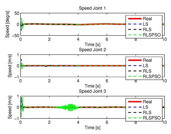 In this section, we present the results of the identification of the inverse kinematics of the manipulator. Comparisons of actual and estimated values are presented. The results of speeds, accelerations and torques are also presented for each trajectory generated from the identification of LS, RLS, and RLSPSO.