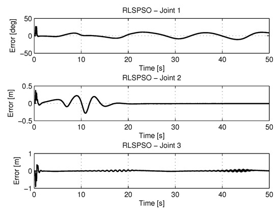 In [15] used the torque exerted by each joint when performing periodic excited Fourier trajectories. The parameters were divided into a linear and nonlinear part and used the least square linear parameter estimation (LLS) and the double swarm-based particle swarm optimization (DPso) to calculate the linear and nonlinear parts, respectively. The configurations used were simpler and can identify the dynamic parameters, the friction coefficients of the joints. Already in the paper of [16] techniques were used to identify the dynamic parameters in an industrial manipulator robot with 5 degrees of freedom. The parameters were identified using LS, Adaline artificial neural networks, Hopfield artificial neural networks and the extended Kalman Filter. To solve manipulator robots identification problems [17] presented an intelligent approach with PSO that was called the elitist learning strategy (ELS) and the proportional-integral-derivative controller (PID) hybridized approach (ELPIDSO). The parameter identification of robots manipulator was performed to evaluate the performance of the approach. The ELPIDSO was superior to the LS method, genetic algorithm (GA) and SPSO in the estimation of the parameters of the robot manipulators kinetic models.
