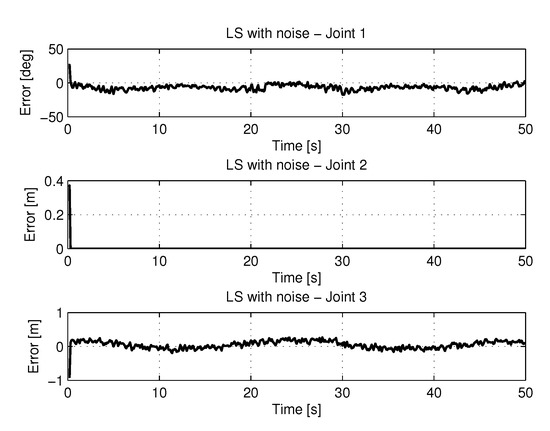 Equation (21) is a solution by the LS method, which is equal to the solution obtained using the pseudo-inverse matrix. This solution will be used to perform the inverse of kinematic identification with LS.
