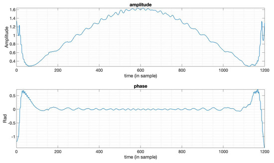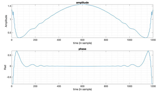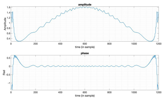 The amplitude and phase of the optimized window function in Figure 7.