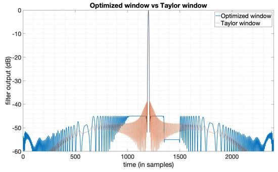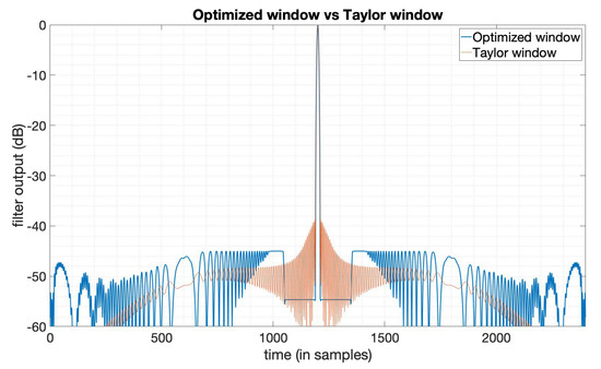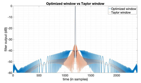 The output of the Taylor window () and the SNR loss-optimized window.