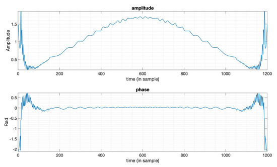 The amplitude and phase of the optimized window function in Figure 1.
