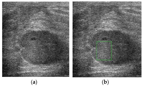 The primary step is the feature set extraction from the ultrasound breast cyst imagery. Initially, the expert medical practitioner identifies, marks, and segregates the ROI from the ultrasound breast cyst image with the ideas taken from the biopsy report. In Figure 2a, we can observe the general representation of the ultrasound breast cyst image, and Figure 2b portrays the marked and segregated ROI portions from these imageries.