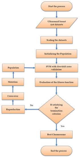 In recent investigations, it has been found that when breast cancer is detected in earlier stages, it can be diagnosed and operated upon to remove cancer altogether from the patient [4,5,6,7,8,9]. Moreover, several physicians have recommended the deployment of sonography sensing systems for diagnosing cancer in the breasts. Even though the sonography sensing systems are well-renowned in the premature diagnosis of cancer in the breasts, on the other hand, it is a critical fact that the sonography sensing systems in some cases produce imagery with low-resolution; therefore, suitable approaches are essential for enhancing the resolution of these images. The imaging by the sonography sensing systems can only point out at suspected masses (cysts), and the biopsy is mainly used to assess if the sampled tissue is malignant or normal. In addition, the wastage of overall resources can be avoided by the use of a suitable methodology that will enable medical doctors to make an efficient detection of breast cancer during their primary examination of the imagery. The genetic algorithm (GA) is a well-known approach for solving pattern recognition problems in medical and random image datasets [10,11,12].
