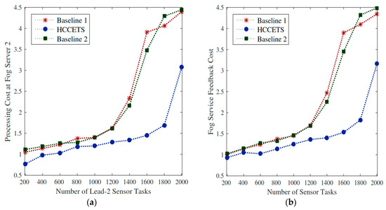 Scheduling of tasks to fog servers. (a,b) HCCETS improved system utilization cost as compared to the homogeneous system based Baseline 1 and Baseline 2.