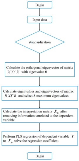 - replaces the original interpretation matrix , and a partial least squares regression is used to determine the relationship between and . The algorithm flow is shown in Figure 6.
