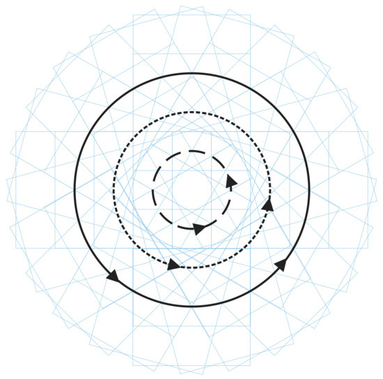- Under the situation where the position of the starting point of the scanning has a deviation apart from the ideal position, which often happened in our practical works, the actual path scanning by the system is another set of concentric circles, as shown by the dashed lines in Figure 11a;