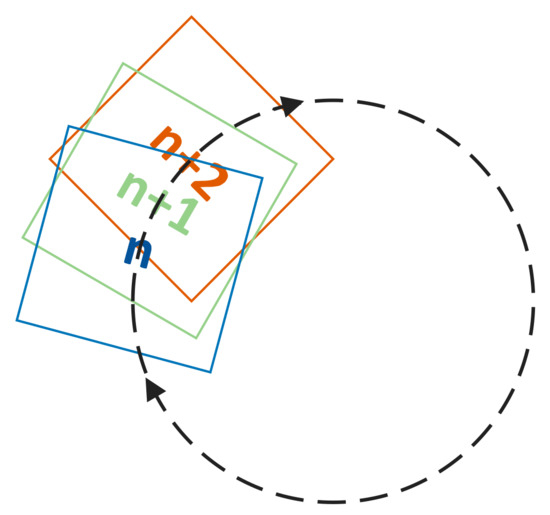 The predicted coordinates in sub-aperture n + 2, () can be calculated with a similar method.