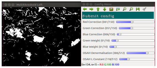 Screenshot of the system during calibration process for plant identification, showing a desirable output following thresholding.