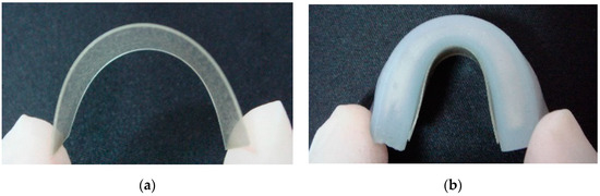 Figure 6 shows that the fabricated liquid-metal embedded silicone elastomer had good flexible and stretchable properties when the temperature was higher than 30 °C than that below 30 °C.