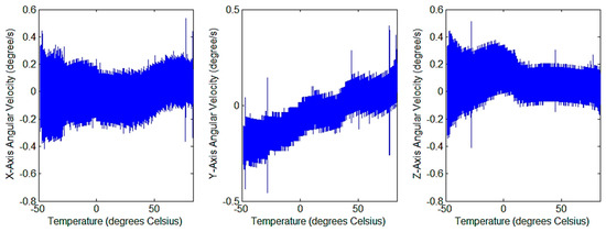 The angular velocity compensation model uses a second-order polynomial model. The temperature is defined as and the angular velocity output is ; then, the output after compensation is . Then, the following equation is established: