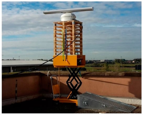 The Simrad/Navico SRT Radar and its lifter on the top of the Information Engineering building (Tor Vergata University).