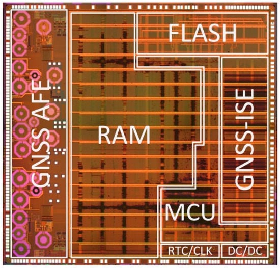 - Wei, J.-M.; Chen, C.-N.; Chen, K.-T.; Kuo, C.-F.; Ong, B.-H.; Lu, C.-H.; Liu, C.-C.; Chiou, H.-C.; Yeh, H.-C.; Shieh, J.-H.; et al. A 110 nm RFCMOS GPS SOC with 34 Mw–165 dBm tracking sensitivity. In Proceedings of the IEEE International Digest of Technical Papers, Solid-State Circuits Conference, San Francisco, CA, USA, 8–12 February 2009; pp. 254–255. [Google Scholar] [CrossRef]