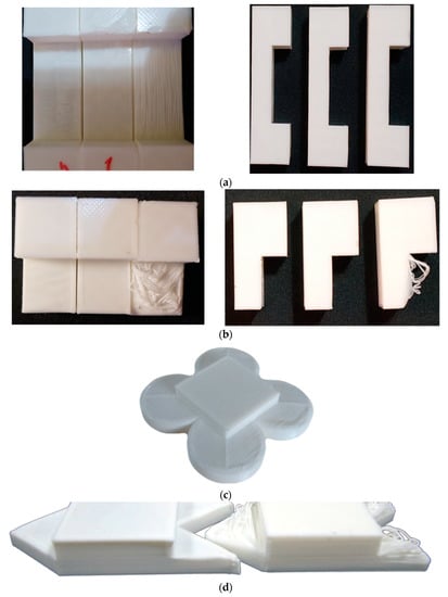 There are a number of possible approaches to deal with this limitation. The first and most straightforward is “design for printability” [,,]. This technique has to be employed from the object-design stage and consists of using a number of design criteria with the aim of simultaneously generating a functional and supportless 3D printable object (for instance Figure 4a,b). This can be a complicated process and often impossible to achieve.