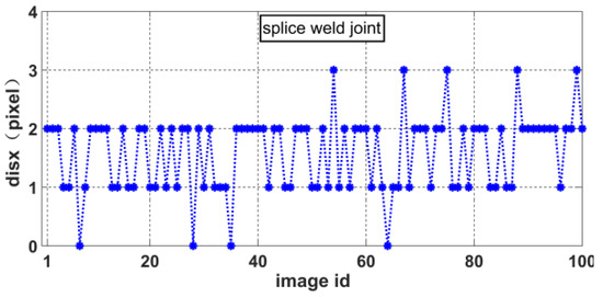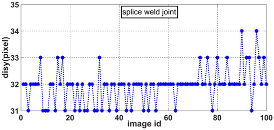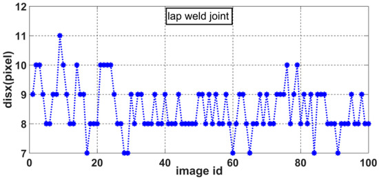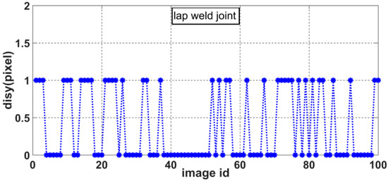 Accordingly, we can obtain the distributions of disx and disy for various weld joint images. Figure 12, Figure 13, Figure 14 and Figure 15 show the disx and disy of the lap weld joint and splice weld joint.