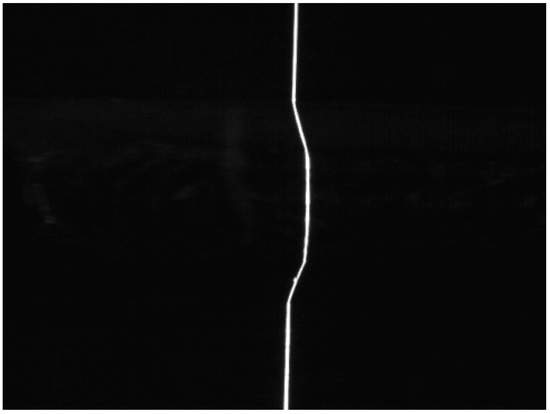 where i is the ith row in the image, pi(x) and pi(y) are the coordinates of the points on the laser curve in the image, g is the grey value of the current point on the laser stripe, whose value is 0 or 255, h is the X coordinate of the current point on the laser stripe, and k and j are the X coordinates of the left and right edge points, respectively, of the laser stripe in each row of pixels. Figure 8c shows the laser curve extraction results.