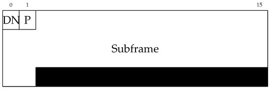 Start and Stop delimiters have been introduced as a synchronization mechanism. This has been carried out because VLC systems have a dual use. On the one side, VLC access points must act as lighting devices, and this function must remain unaffected by data transmission. On the other hand, these devices are also data sources but information is not being sent continuously. The delimiters help in the time synchronization task. Furthermore, in this case, the HNF subframe (associated to the 0x05 purpose field) comprises only a variable-length data field (up to 48 bytes).