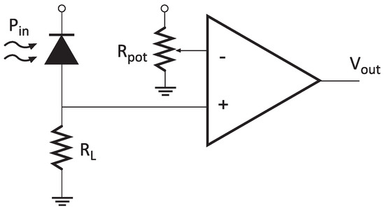 The signal-to-noise ratio (SNR) at the input of the comparator stage of Figure 11 can be observed in Equation (1).