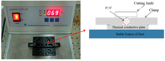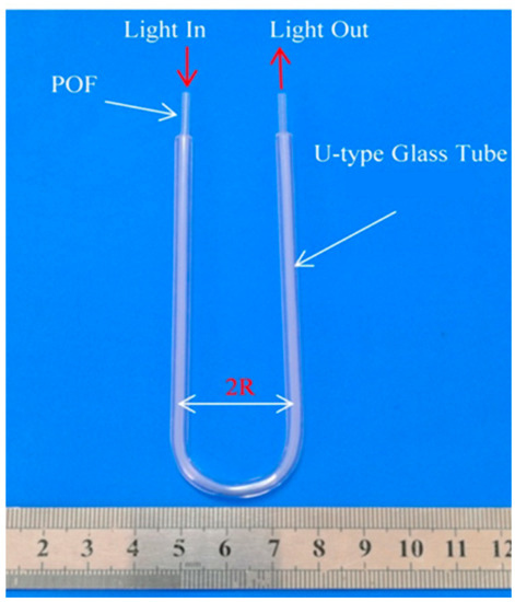 The proposed sensor is low-cost, simple, and easy to be implemented. However, the quality of the cutting surface and U-fiber fixation are crucial for the working performance of the sensor. In this study, face machining was conducted by hot cutting and the ends were polished after cutting, as shown in Figure 4. The U-fiber fixation was handled by a U-shape glass tube, shown in Figure 5.